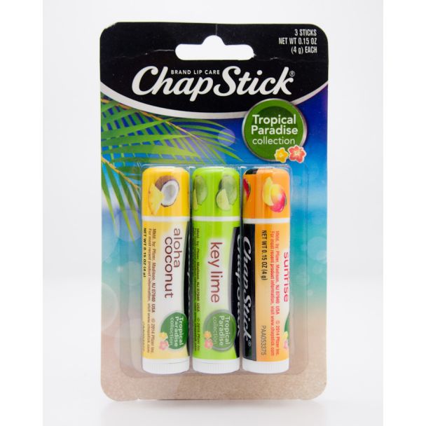 Chapstick Tropical Paradise Collection - Aloha Coconut, Key Lime, Mango Sunrise 3 Sticks - net wt 0.15 oz (4g) Each