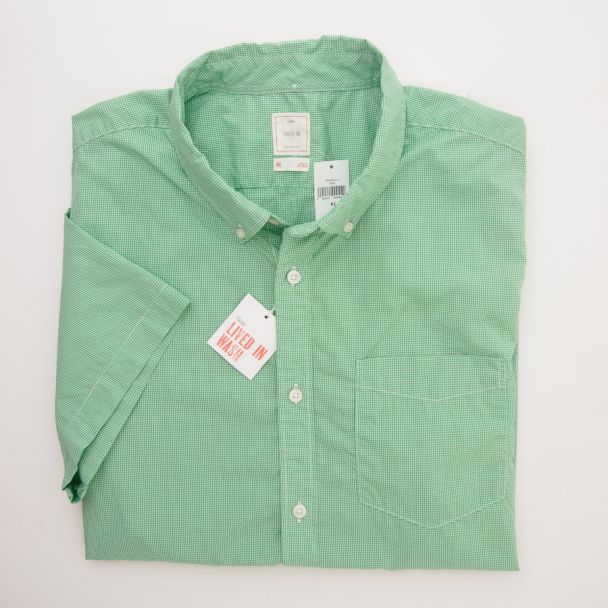 Gap Lived-In Wash Short Sleeve Micro Check Shirt in Flash Green Men's XL - Extra Large