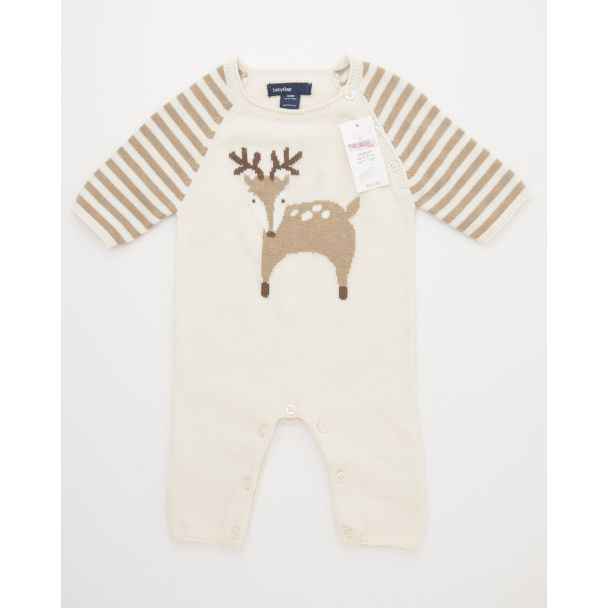 NEW babyGap Favorite Intarsia Deer One-Piece Sweater Onesie in French Vanilla