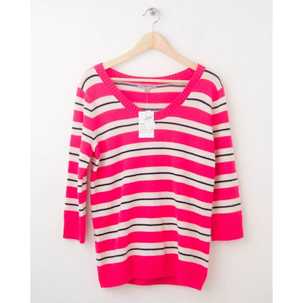 NEW Gap Neon Striped Pullover Sweater in Diva Pink