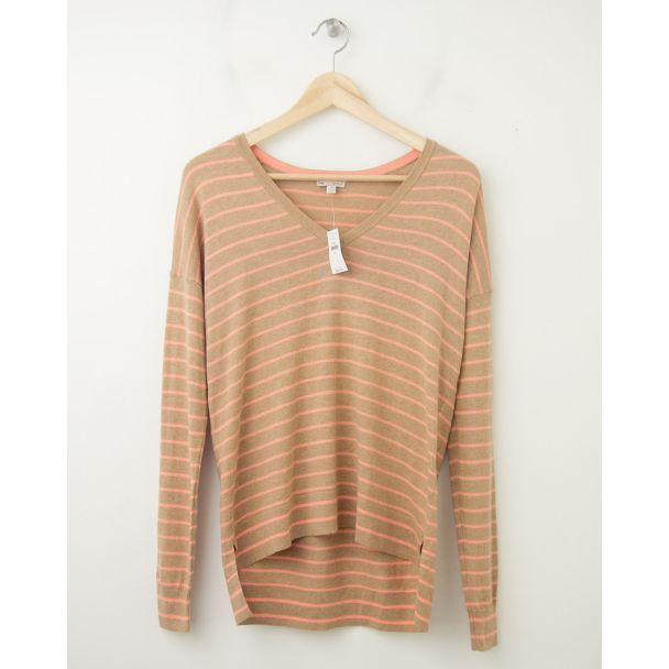 NEW Gap Perfect V-Neck Silk Blend Sweater in Oatmeal Stripe