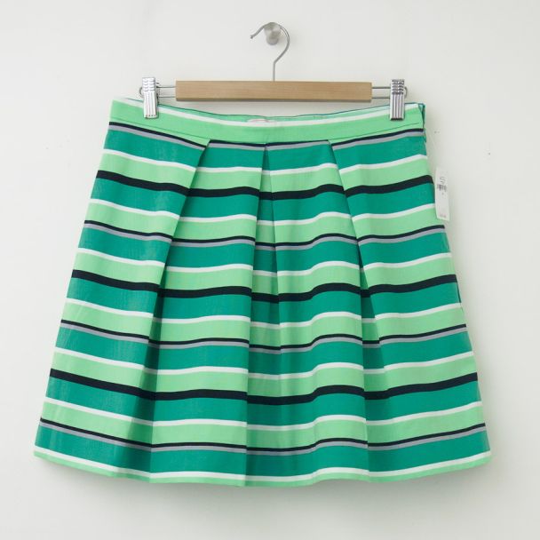 NEW Gap Pleated Striped Fit and Flare Skirt in Blue Green Stripe