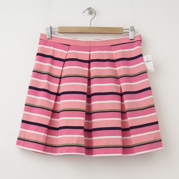 NEW Gap Pleated Striped Fit and Flare Skirt in Pink Stripe