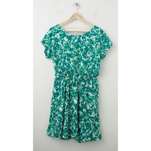 NEW Gap Printed Zoe Sleeve Fit & Flare Dress in Green Multi-Dots