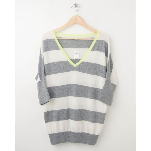 NEW Gap Striped Dolman-Sleeve Sweater in Heather Grey