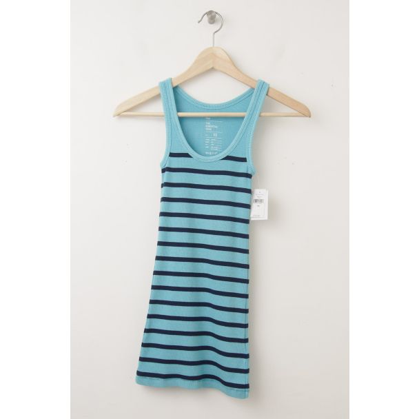 NEW Gap Women's Essential Overdyed Striped Rib Tank in Blue Stripe