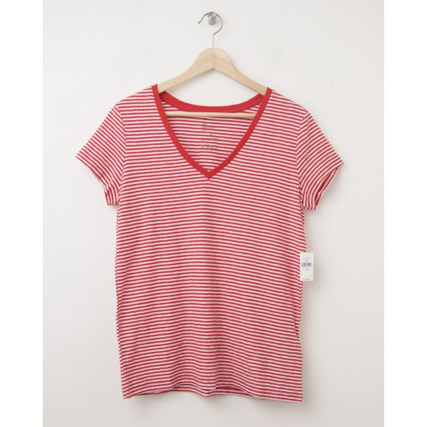 NEW Gap Women's The Essential Stripe V-Neck Tee T-Shirt in Red Stripe