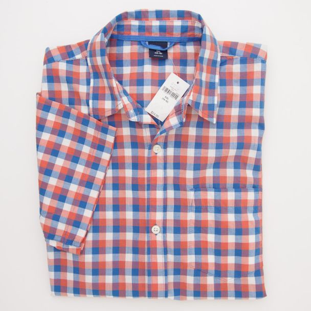 NEW GapKids Boys Short Sleeve Gingham Shirt in Orange & Blue Plaid