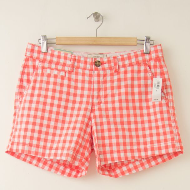 NEW Old Navy 5" Perfect Shorts in Bright Coral Gingham Plaid