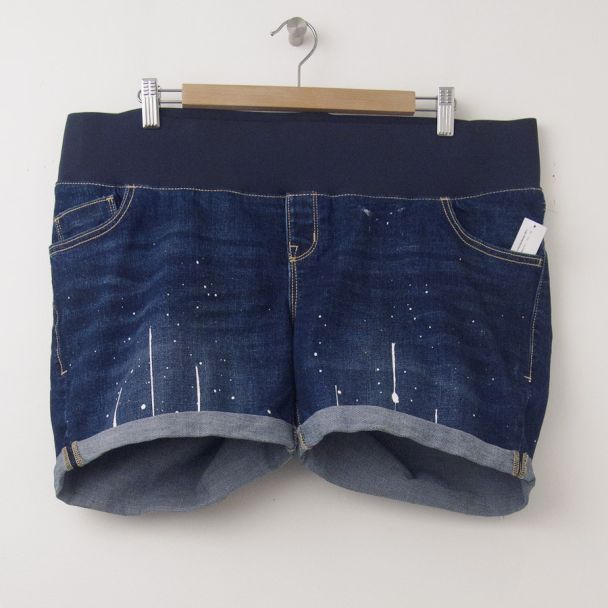 NEW Old Navy Demi-Panel Paint-Splatter Denim Maternity Shorts in Paint